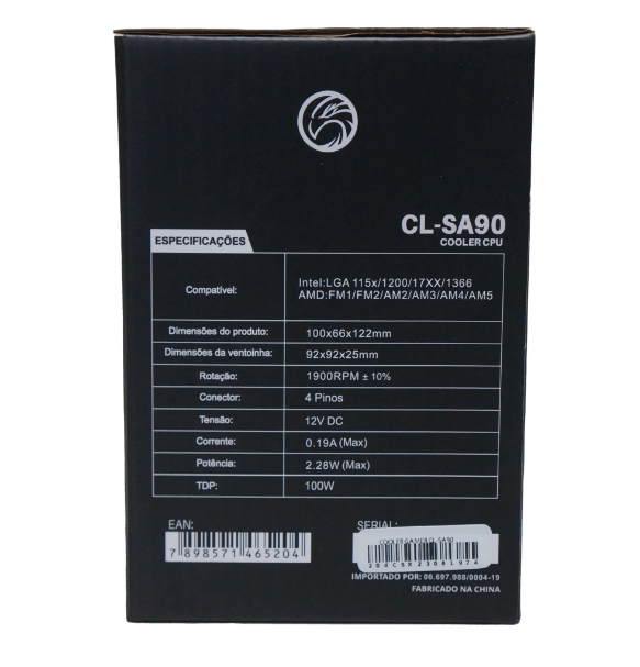 Compatível: Intel LGA 115x/775/1366 e processadores AMD com até 90W de TDP
