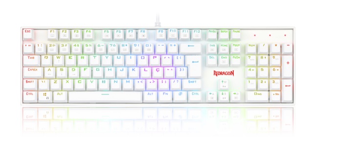 Teclado Mecânico Gamer Redragon Mitra K551W, RGB, Switch Brown, ABNT2, White, K551W-RGB (PT-BROWN)